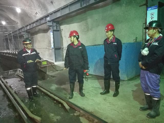 劉長(zhǎng)華一到富凱公司便換上工作服,戴上安全帽,順副井下到—440井巷檢查工作。他來到井下值班室仔細(xì)詢問井下工作進(jìn)度、人員分布和出礦情況,其后,檢查了避難所、卸礦場(chǎng)。上井后,來到選礦區(qū),了解礦石粗磨、細(xì)磨、精選全過程。